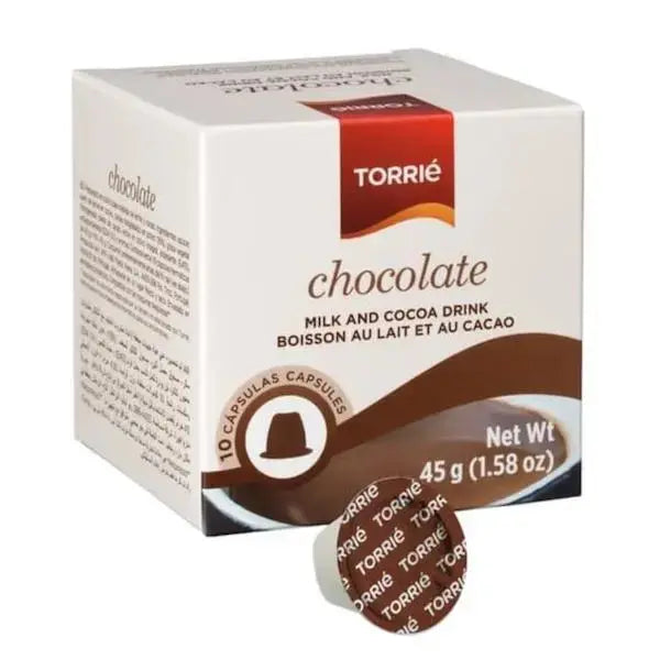 You are buying top-tier Hot Chocolate capsules exclusively designed for use with Nespresso coffee machines. Torrie, one of Portugal's leading coffee brands, is widely distributed in 70 different countries. Our chocolate capsules offer a convenient and trouble-free method to relish a deluxe hot chocolate treat in the comfort of your own home. Just insert a capsule of your preferred flavor into your machine, and allow the delightful fragrance and divine flavor to infuse your cup effortlessly.