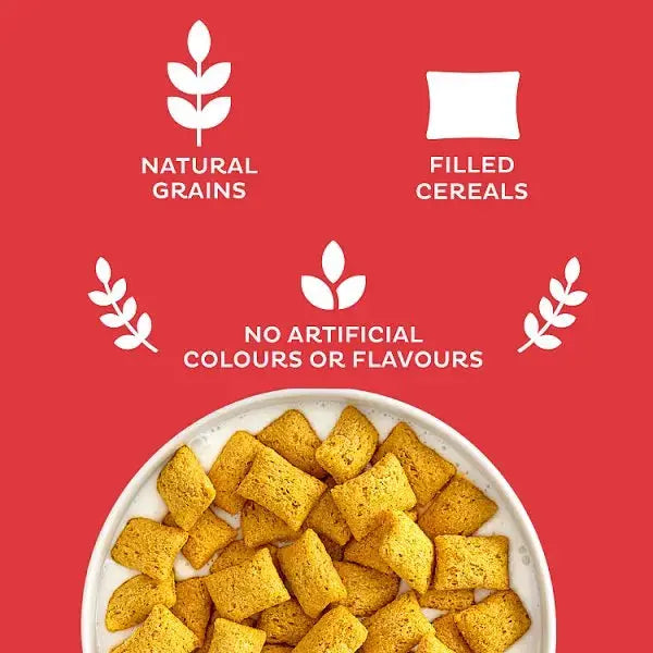 Mixed Cereal Pillows Containing a Chocolate and Hazelnut Flavoured Filling, Fortified with Vitamins.