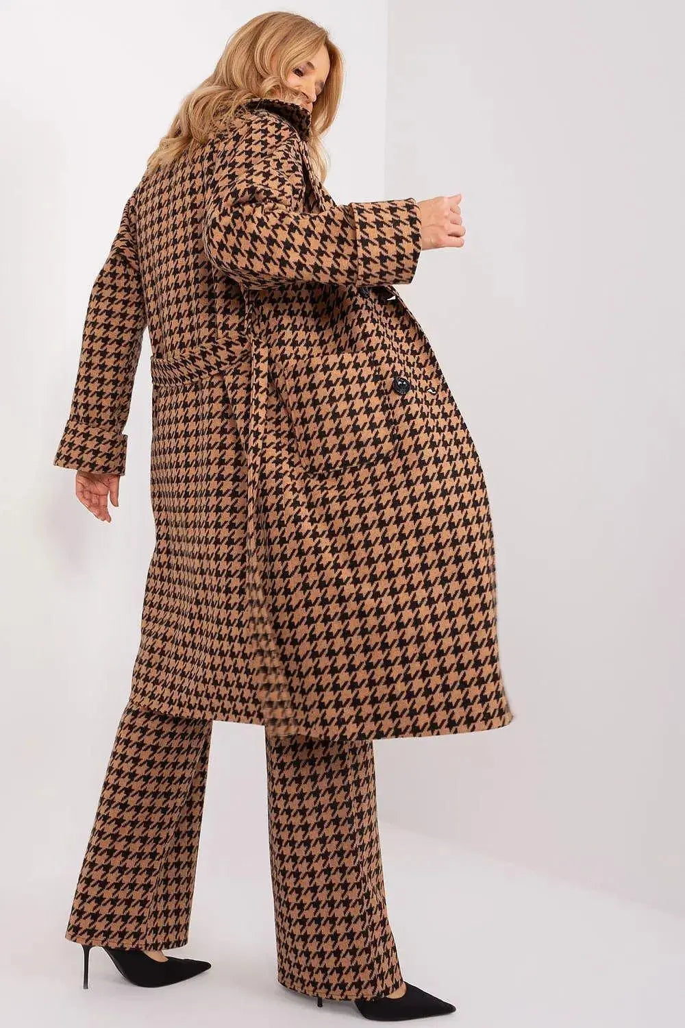 Lakerta elegant and classic transitional coat in a stylish pepite pattern is the perfect choice for colder days. Made of the highest quality materials, it is suitable for both the autumn-winter and spring seasons. The over-the-knee length and button closure give it a timeless feel. In addition, this coat is equipped with a lining, which makes it comfortable to wear. A decorative tie belt accentuates the waist, while patch pockets add practicality. It is an excellent choice for everyday wear to work and for more formal occasions.