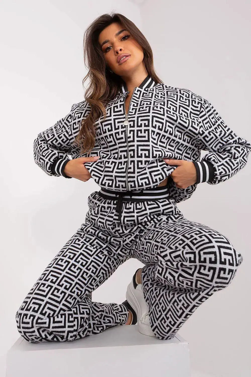 The comfortable cut makes the pants ideal for everyday activities, as well as for work days, guaranteeing freedom of movement. The slip pockets add to their practicality, allowing you to stash small items. This elegant combination of sweatshirt and pants makes this set not only comfortable, but also fashionable and stylish. The casual style makes this set suitable for everyday outings, for work, as well as for colder days, when comfort goes hand in hand with a fashionable look. This is an option for women who value practicality, comfort and style in one.