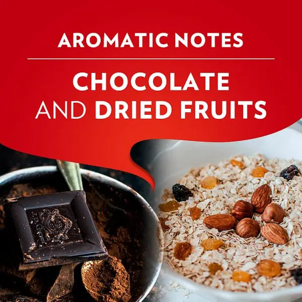 - A blend of Robusta and Arabica beans with a smooth flavour and hints of chocolate and dried fruit.