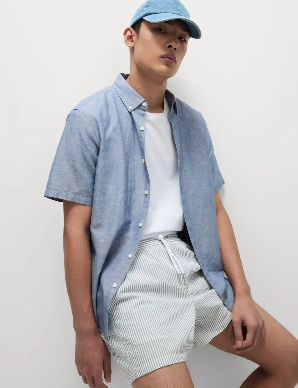 These swim shorts are crafted from breathable cotton-blend striped seersucker fabric for a subtly textured look. The handy side pockets and a zip back pocket is perfect for storing small essentials safely. Made in a regular fit with an adjustable drawstring waist and lined for extra comfort. Sun Smart UPF50+ helps to protect sensitive skin against harmful UV rays. Their quick-drying fabric means they're ready to wear in a flash. M&S Collection: easy-to-wear wardrobe staples that combine classic and contemporary styles.