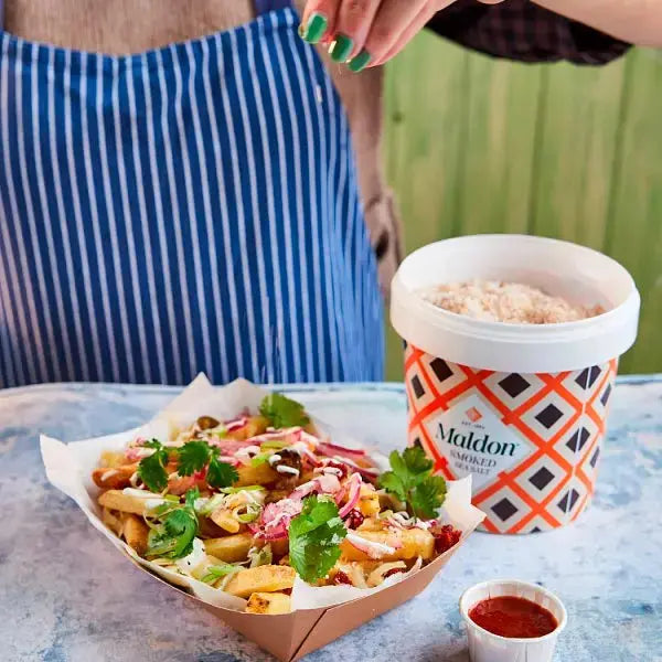 Maldon Smoked Sea Salt Flakes - 500g Tub Hand-harvested sea salt flakes, gently smoked over oak for a deep, rich, bold taste that's great with fish and grilled veg. Fantastic flavour at your fingertips.