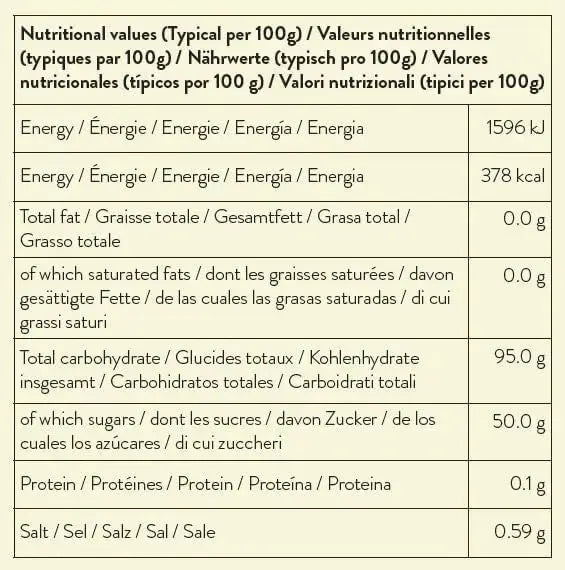 Sugar, Maltodextrin, Natural flavouring, Salt, Thickener: Guar gum.