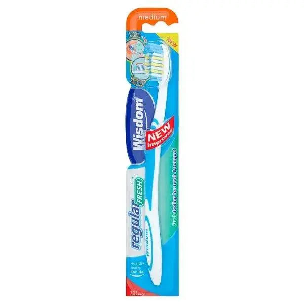 Wisdom Regular Fresh Medium Toothbrush is designed with a unique curve to fit in the contours of your mouth and reach hard to reach areas for an optimal clean. Bristles are designed for medium strength and have added fluoride to help protect against tooth decay.